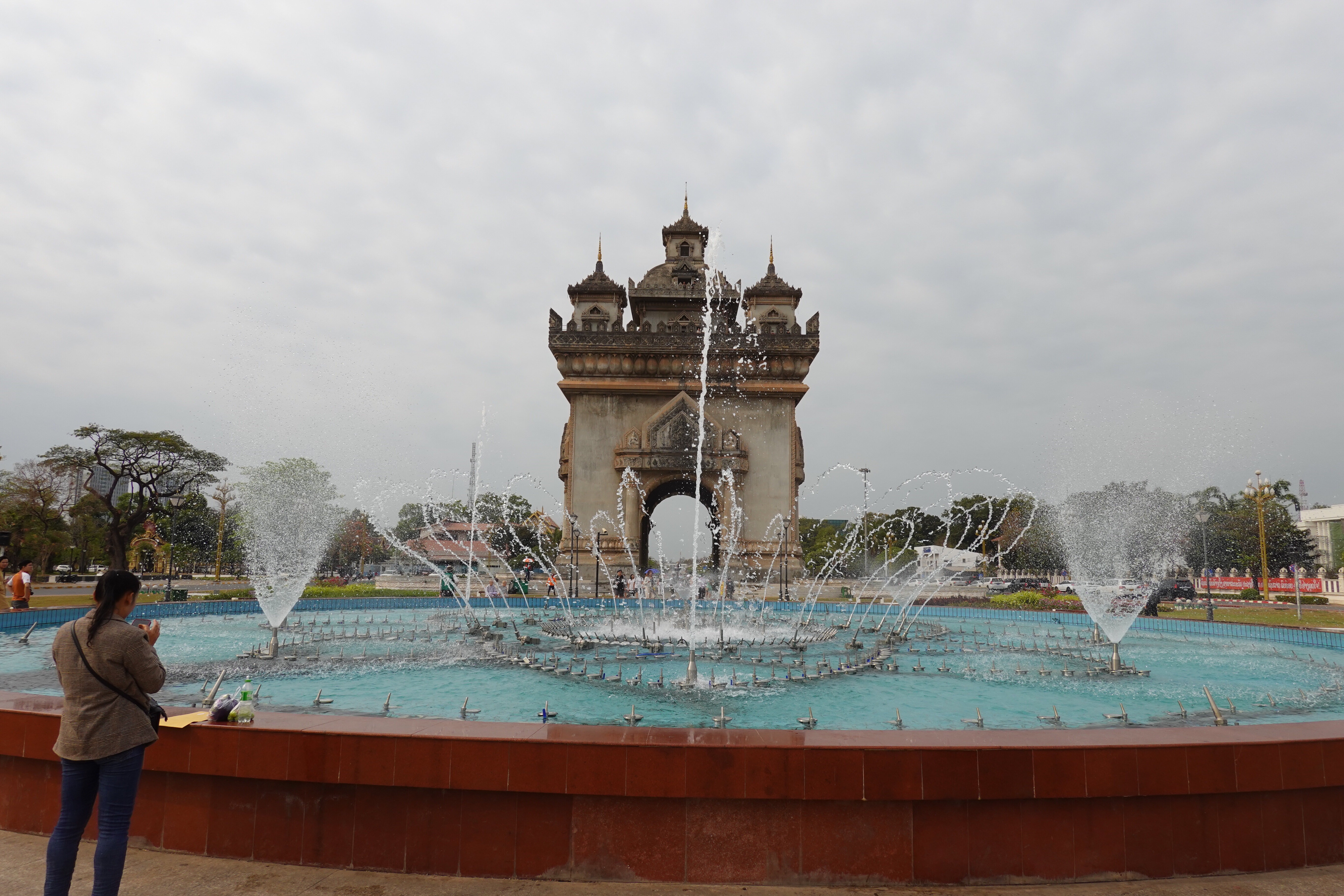 But still. Every place has its own charm. We went to the Arc du Triomphe inspired Victory Monument. Irony alert: it was built as a monument to soldiers killed in WWII and the colonial wars against France, just after the French left, using US money and supplies meant for airport construction, but was renamed by the Pathet Lao after they took over in 1975. So, follow along: French inspiration and US money to build a structure that memorializes anti-colonial resistance and a freshly communist state. Hard not to love that.
