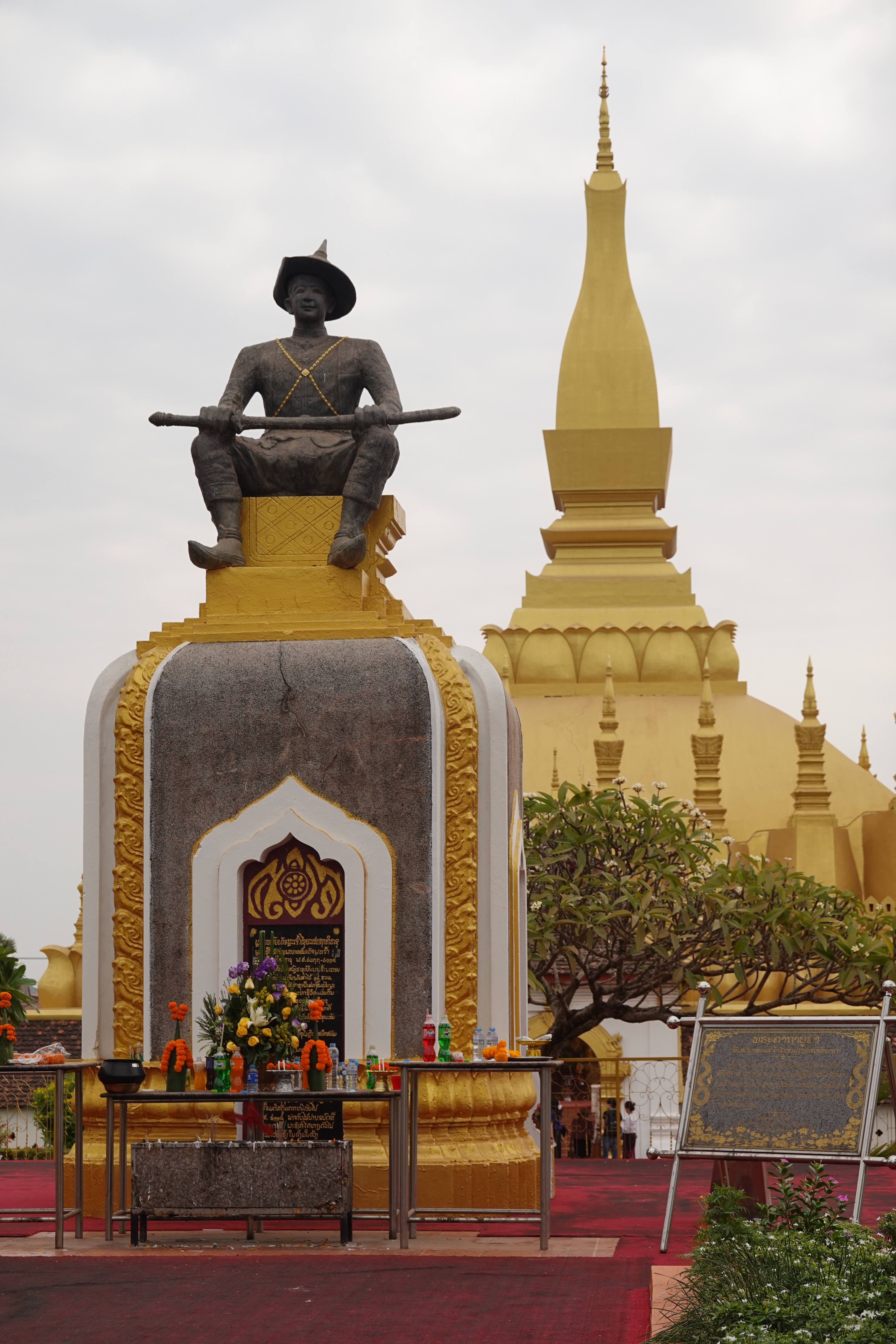 OK, enough of that. Vientiane is what the books all refer to as the modern capital of Lao. By which they mean only that it is the current capital, and not the ancient one. Seems that the king pictured sitting so jauntily above floated his court here, down the Mekong, to avoid the temptation of engaging with some bellicose Thais in the 16th century, and the rest is history.