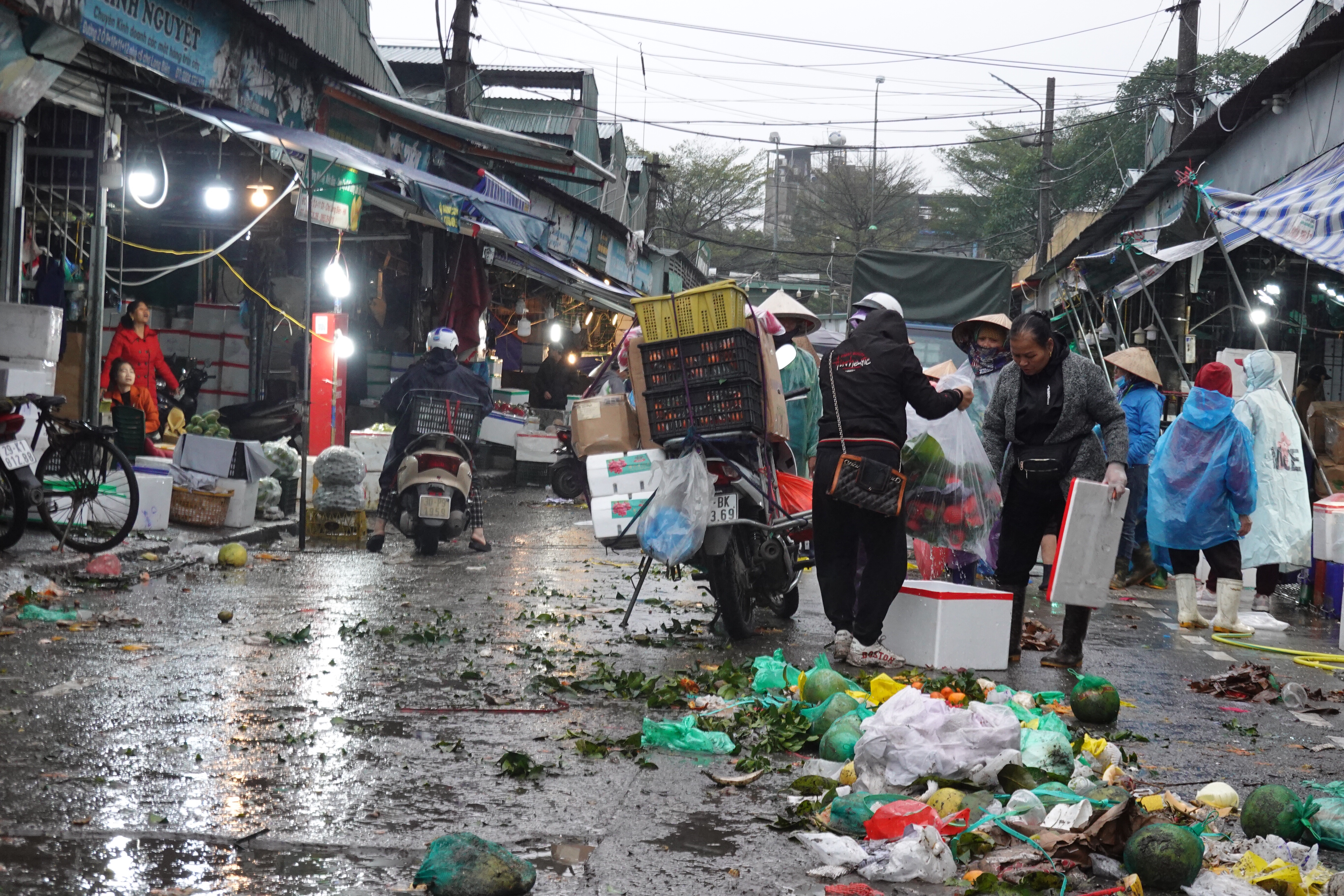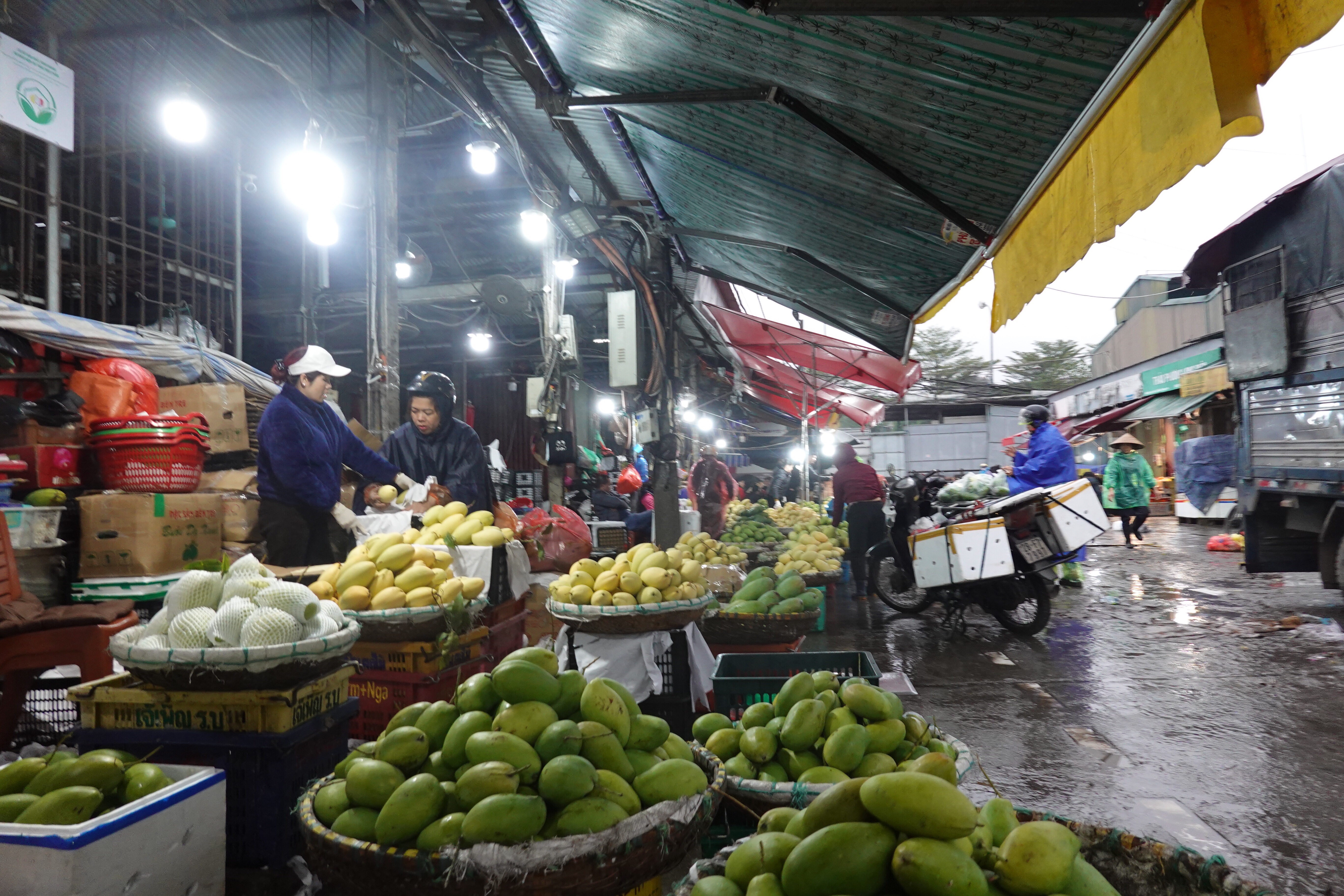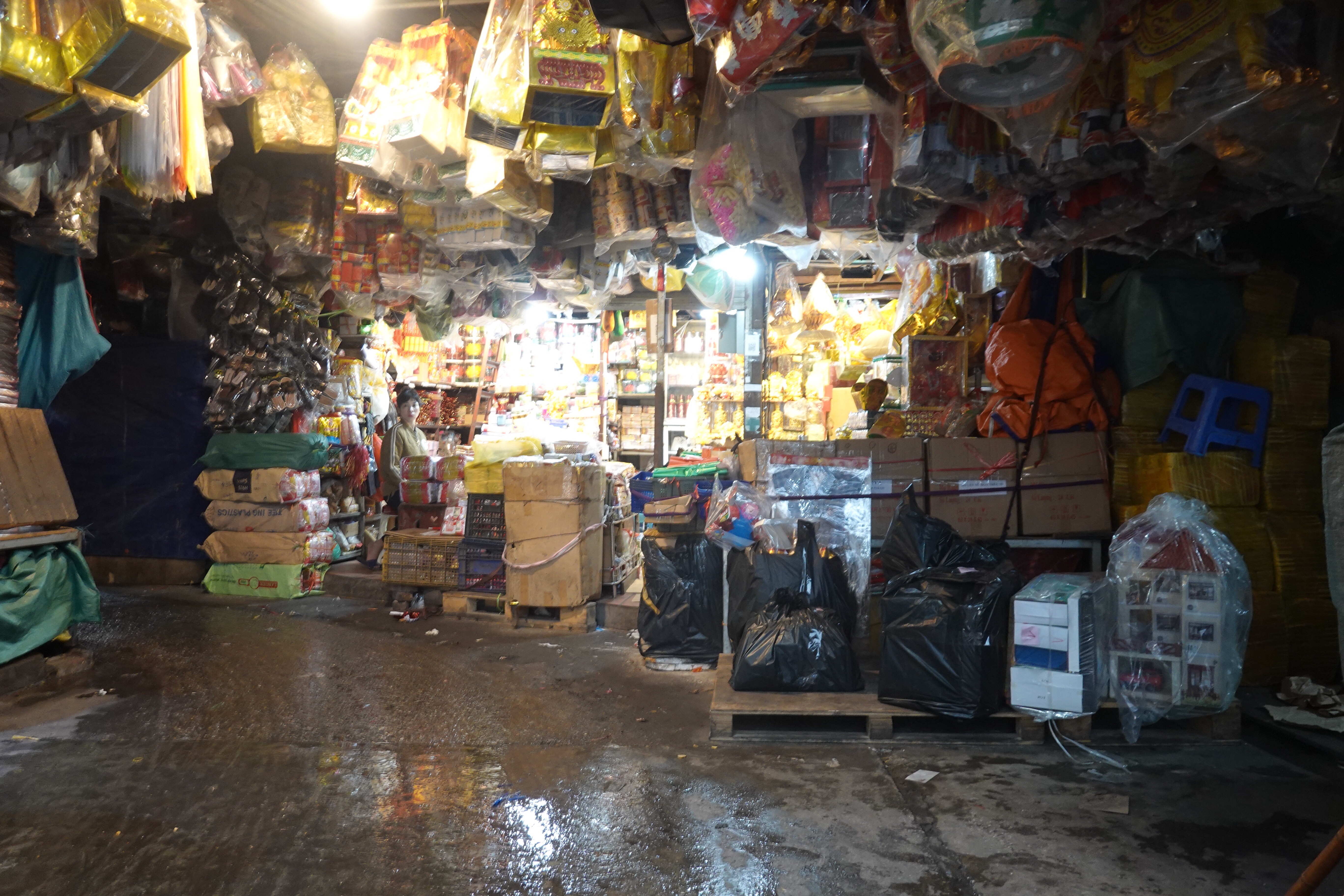 It started with a dawn visit to the overnight wholesale market, where produce, meat, fish and dry goods are sold to people who will resell at local neighbourhood markets. The wholesale market is organized and tidy – not. Instead it is a sprawling warren of lanes and sheds with merch piled haphazardly around and vendors looking dazed and tired after selling all night but still with an hour or two to go before packing up. The rain overnight meant that the outdoor walkways were wet and muddy and strewn with the debris that always seems to be generated by these places.