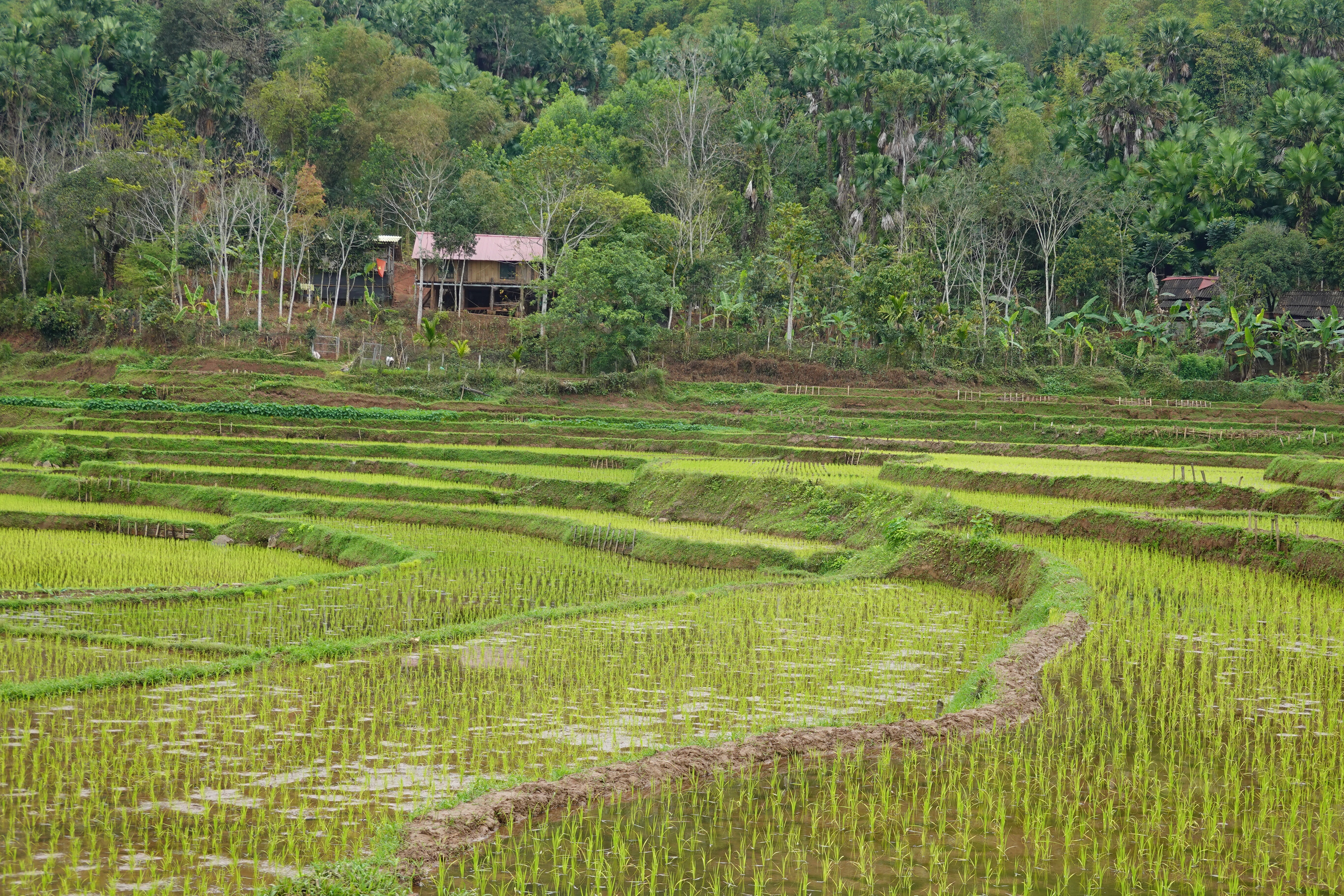 Well this short blog is dedicated to the colour green. It was hard not to see all this rice field green without thinking about listening to a young Van Morrison putting soul into his version of the song and putting Frank and Ray and Kermit to shame. But possibly I digress. What I meant to say is that red is ever present here, the slightly orange red in the national flag and party flags, with their slightly egg-yolky yellow star and hammer-and-sickle, and green is the complement of red, so green is practically the national colour here, right?