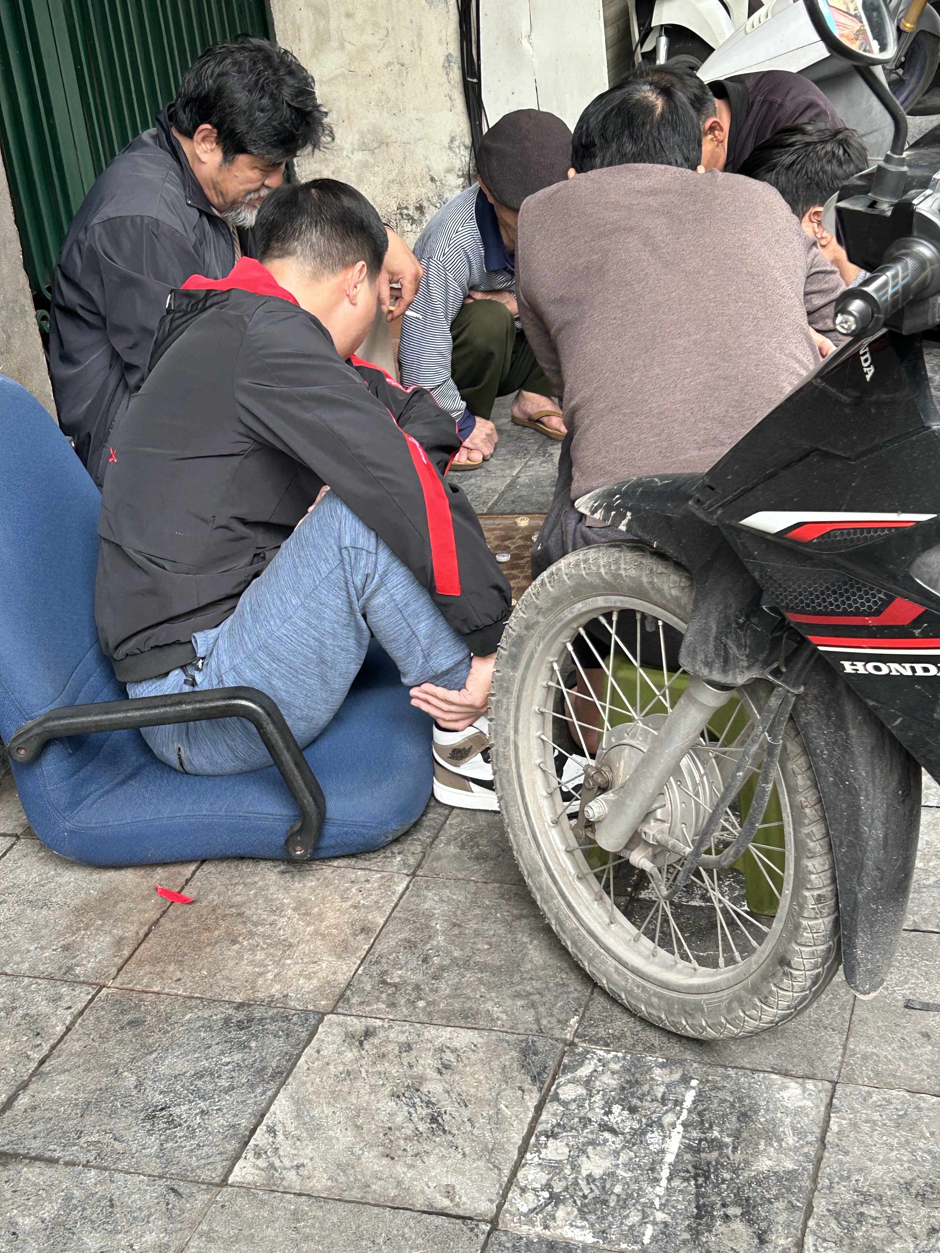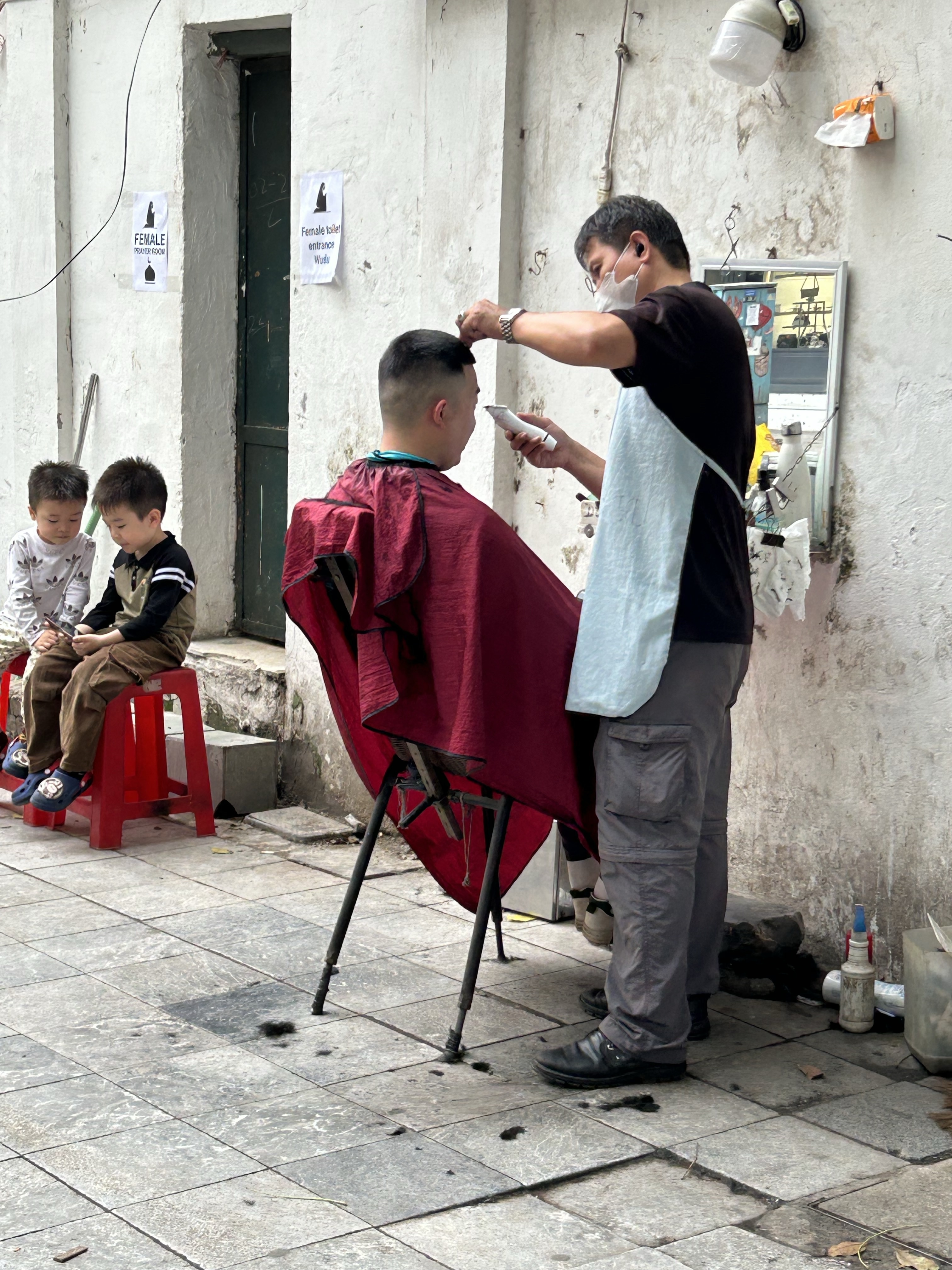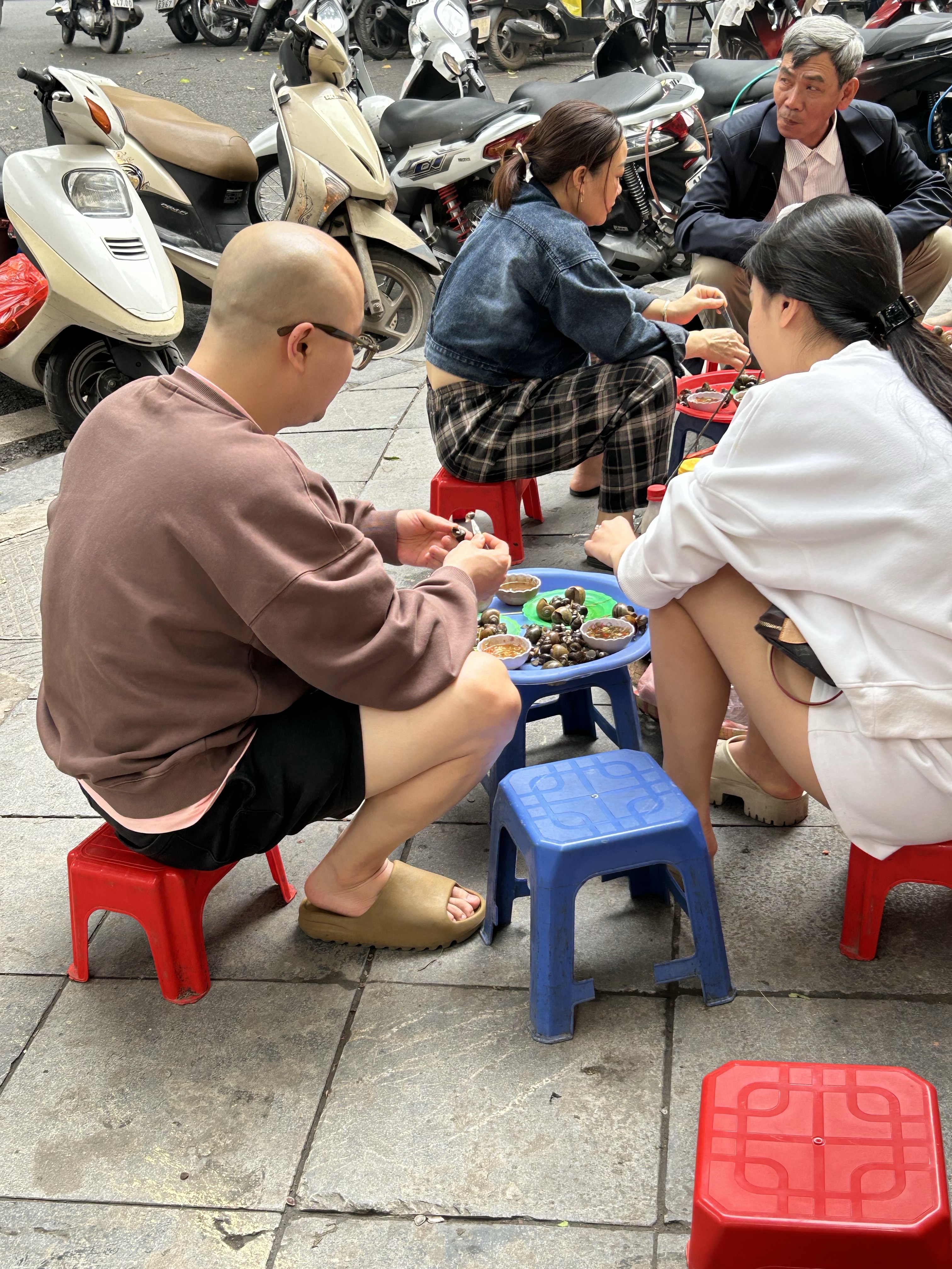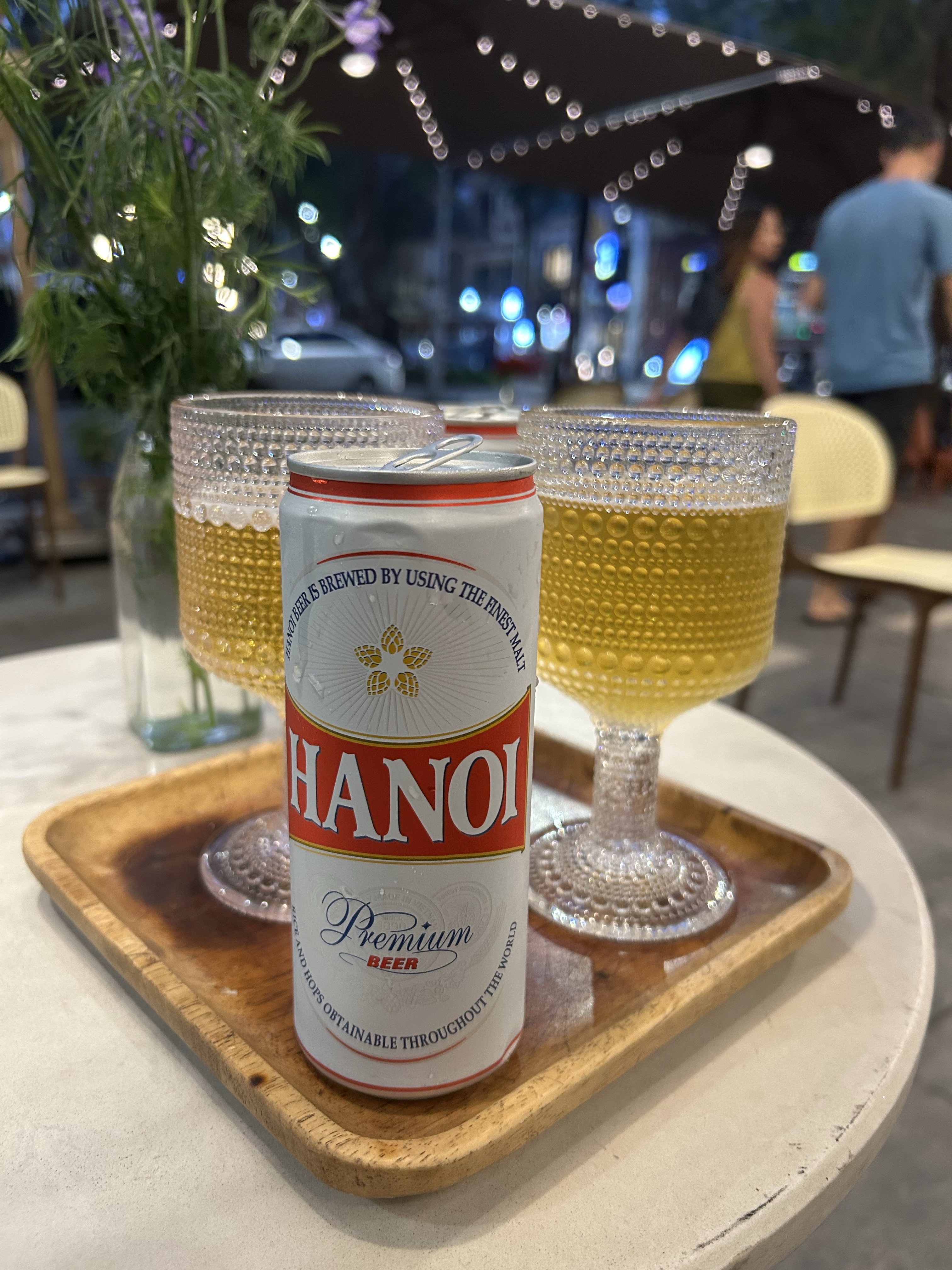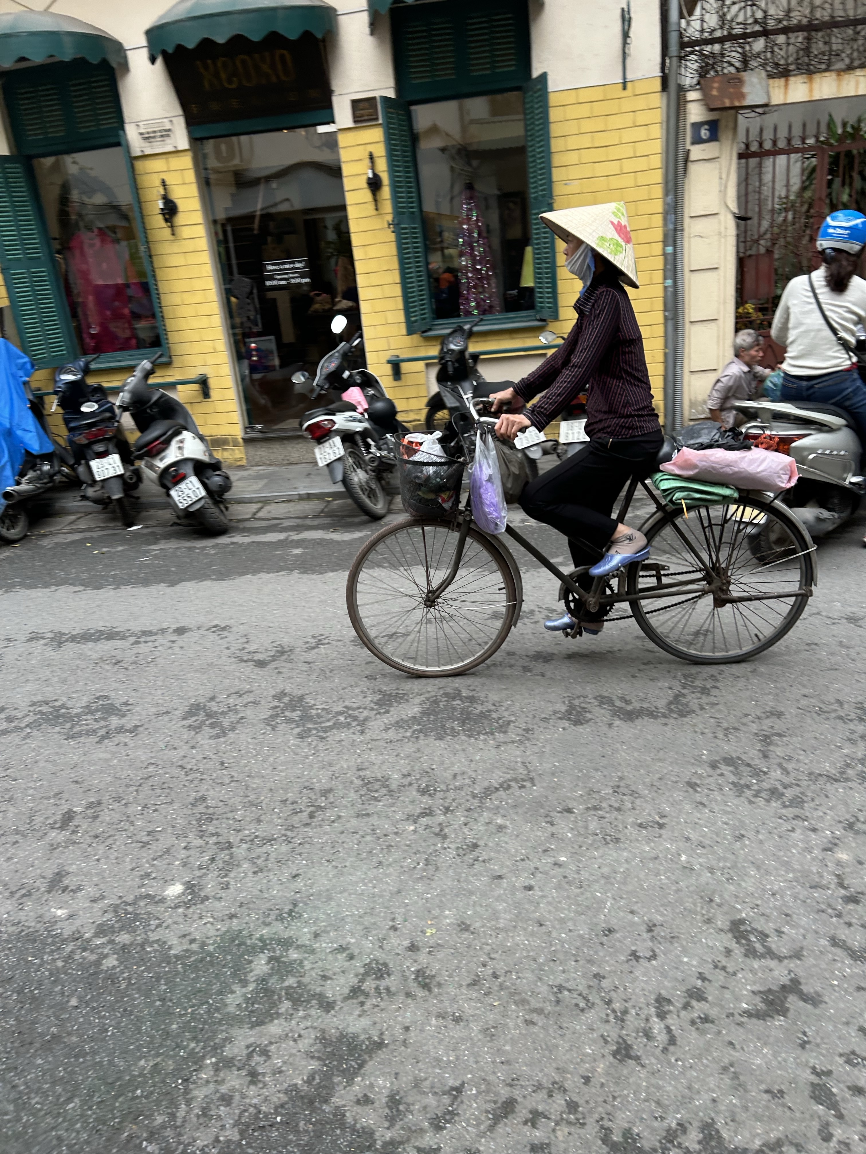 But, again, I digress. The point of this post was that we had an afternoon and evening in Hanoi that we had not really focussed on before it happened. So we walked and watched and soaked up the street life. We came across two very different haircuts happening on the street – our guide had told us earlier that if you want good, you go to a barbershop or salon, but if you want cheap you go to a street service – only about CAD$6 but if the police show up at the end of the block both you and the barber have to leg it. We saw guys drinking beer and smoking (tobacco, I think) in their huge bamboo bong, we saw a man with a snare drum accompanying a woman with a microphone in a small street singing random karaoke, we saw men playing some sort of gambling board game on the sidewalk and, best off all, while having maybe the best cup of flower/herbal/ginger tea imaginable in the Old Quarter, we saw not only a new refrigerator being delivered on the back of a small motorcycle but also, moments later, the old refrigerator being strapped across the back of an aged bicycle and ridden away into the afternoon traffic. It was a full afternoon. Hasta la vista, Hanoi.