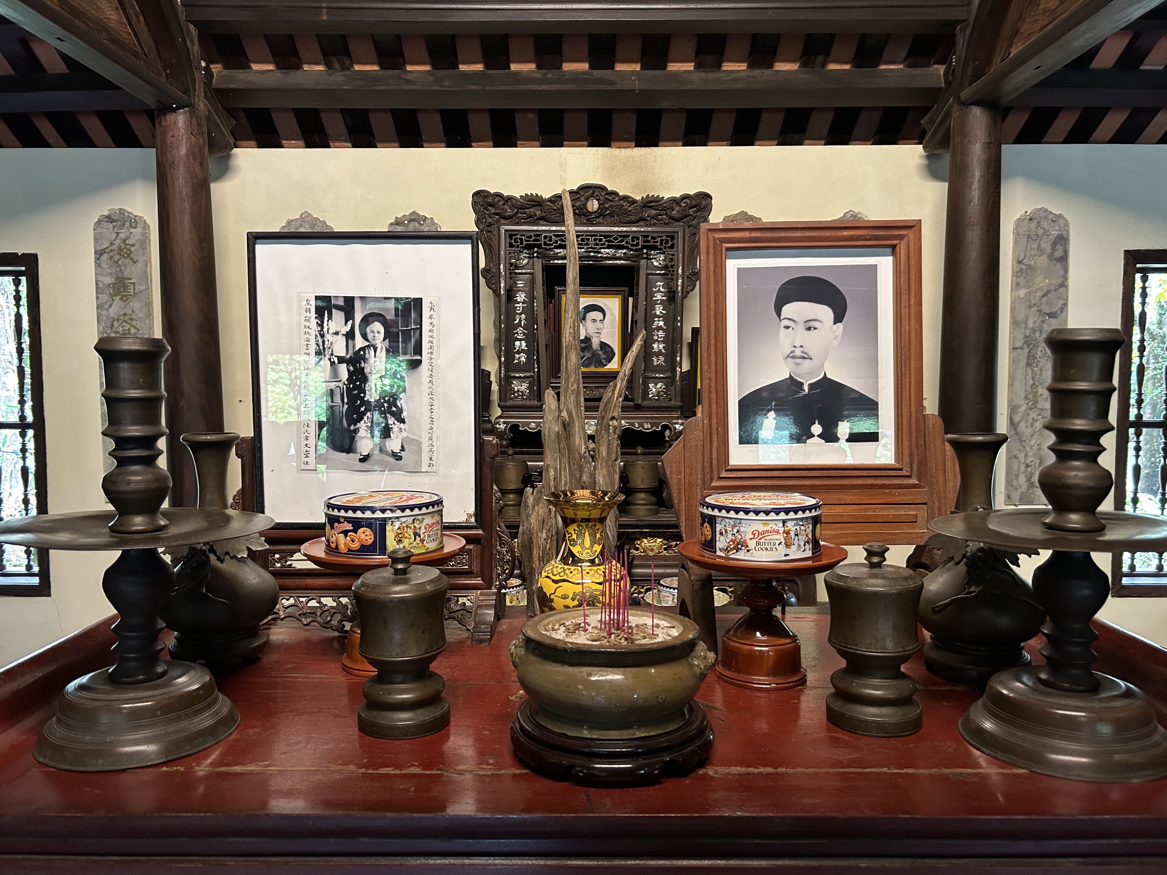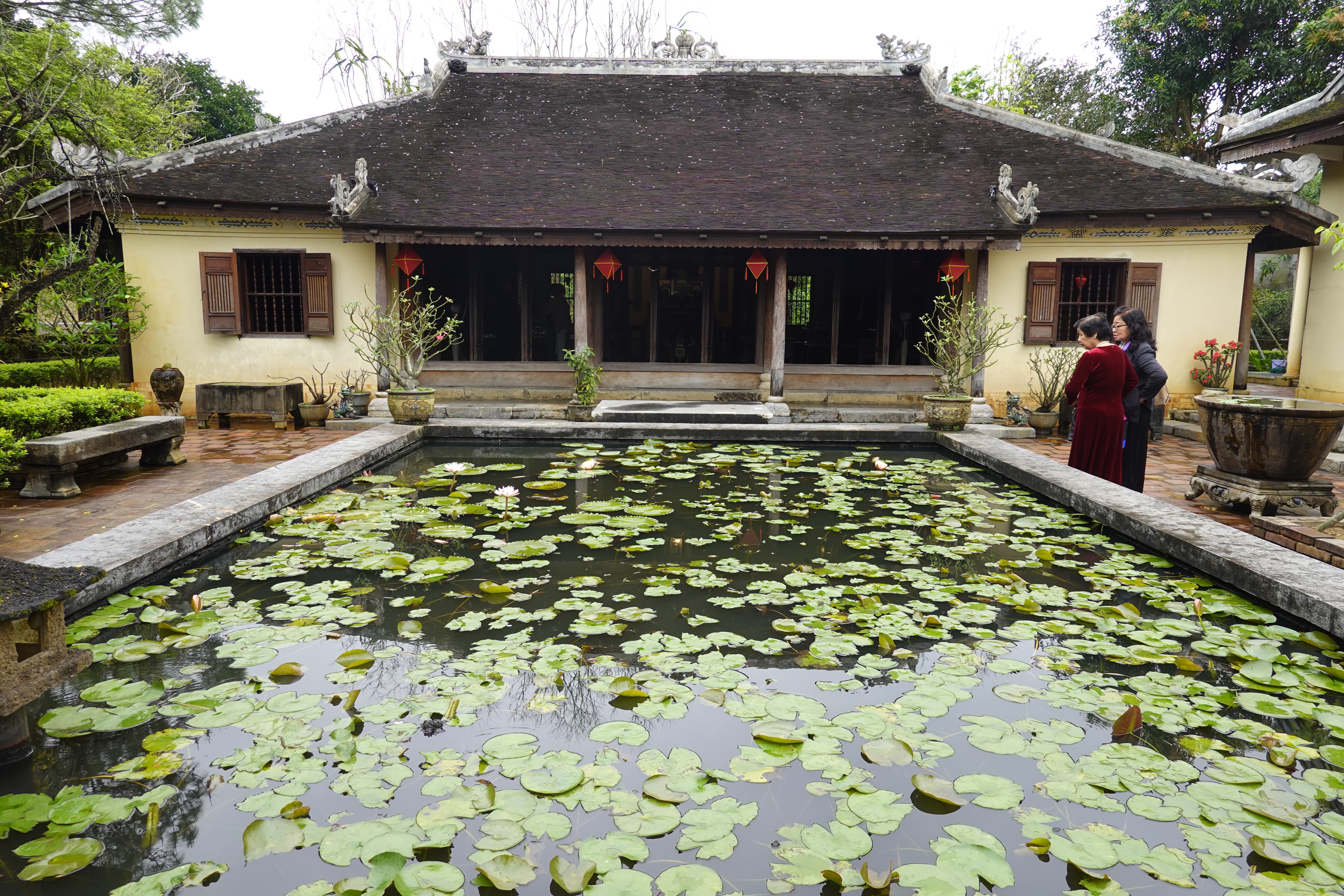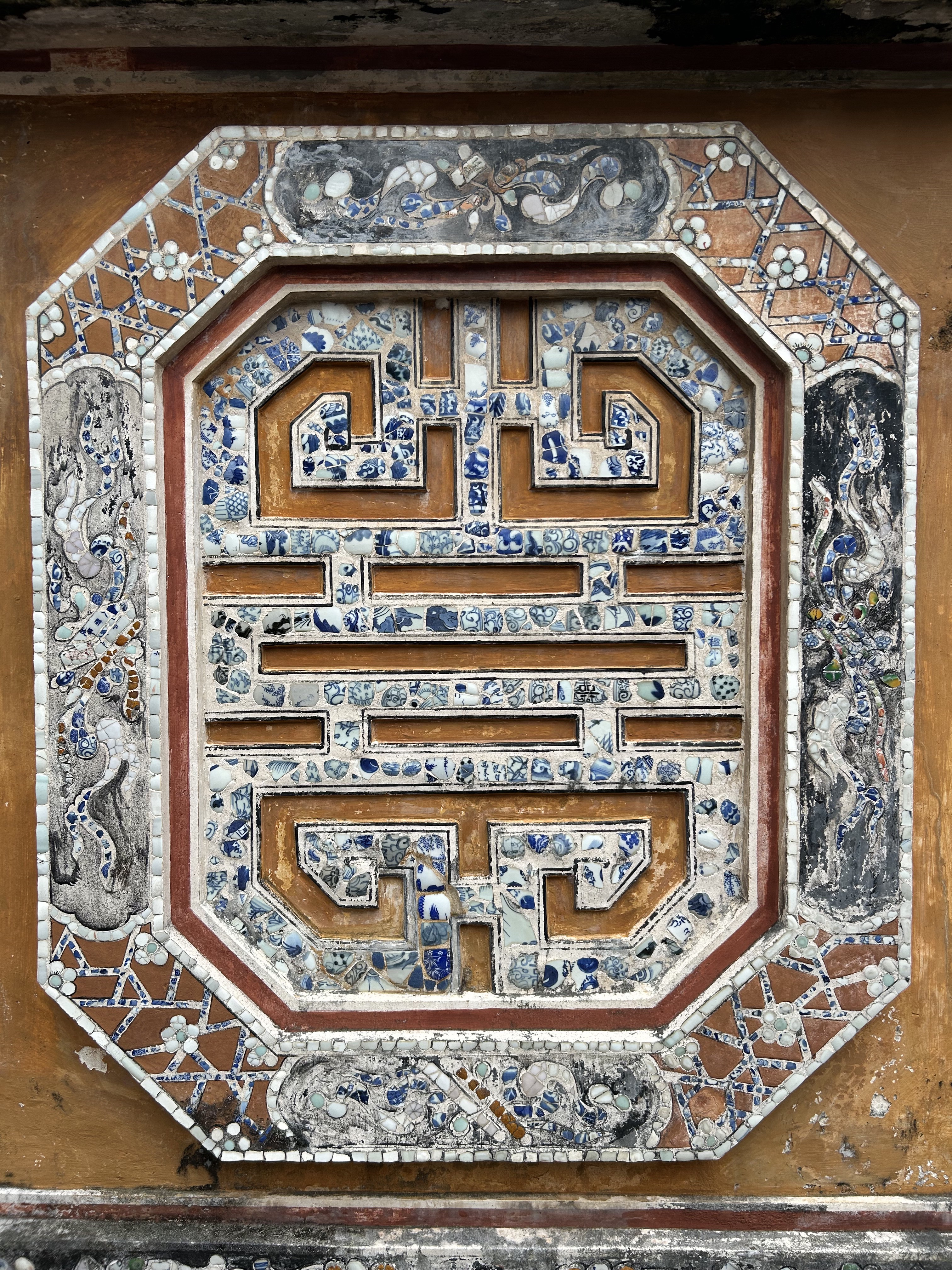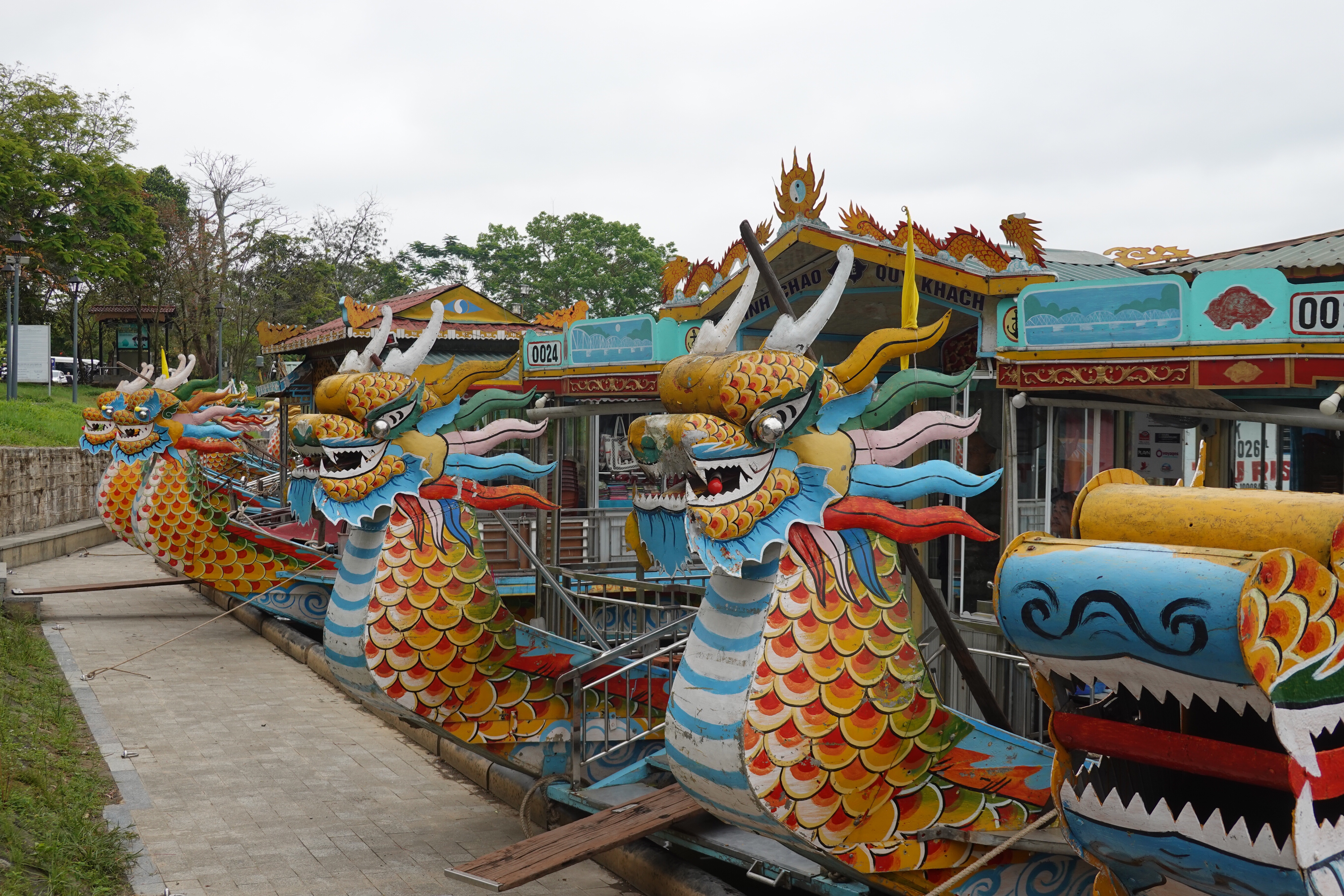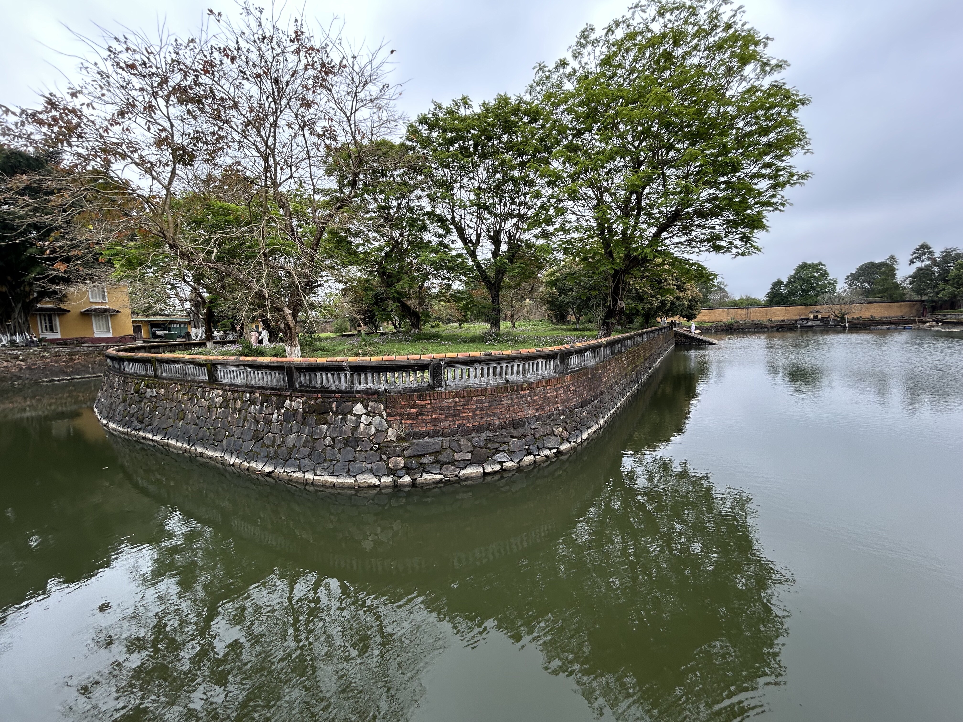 AnyHué. These kings managed to create some very cool things in between taxing the population, mingling with the 100 or so concubines that each kept on the side to go with their several wives, and doing whatever the French told them to do. We visited a beautiful airy house built for a princess, with a feng shui inspired pond in front, which the princess sold to a mandarin only a year later. We spent a lot of time in the Imperial City, a large walled and moated imperial space set inside a much larger walled and moated precinct with 10 kilometres of perimeter walls, with the larger precinct full of houses and streets and stores but with the smaller space preserved for what remains of the kings’ residence and offices and ceremonial buildings after American bombs blew most of it up in 1968. And we went to the outskirts of Hué to see an early king’s summer palace and to see his tomb and those of his wife and one of who his adoptive sons who lasted only 7 months on the throne and so did not have time enough to build himself a tomb on his own property. And in between all that we went to a very old pagoda with a 7 storey tower (we have been schooled repeatedly on the fact that “pagoda” refers to the entire temple complex, and not to the tower, which is referred to as the tower) and with a small number of monks still in residence.