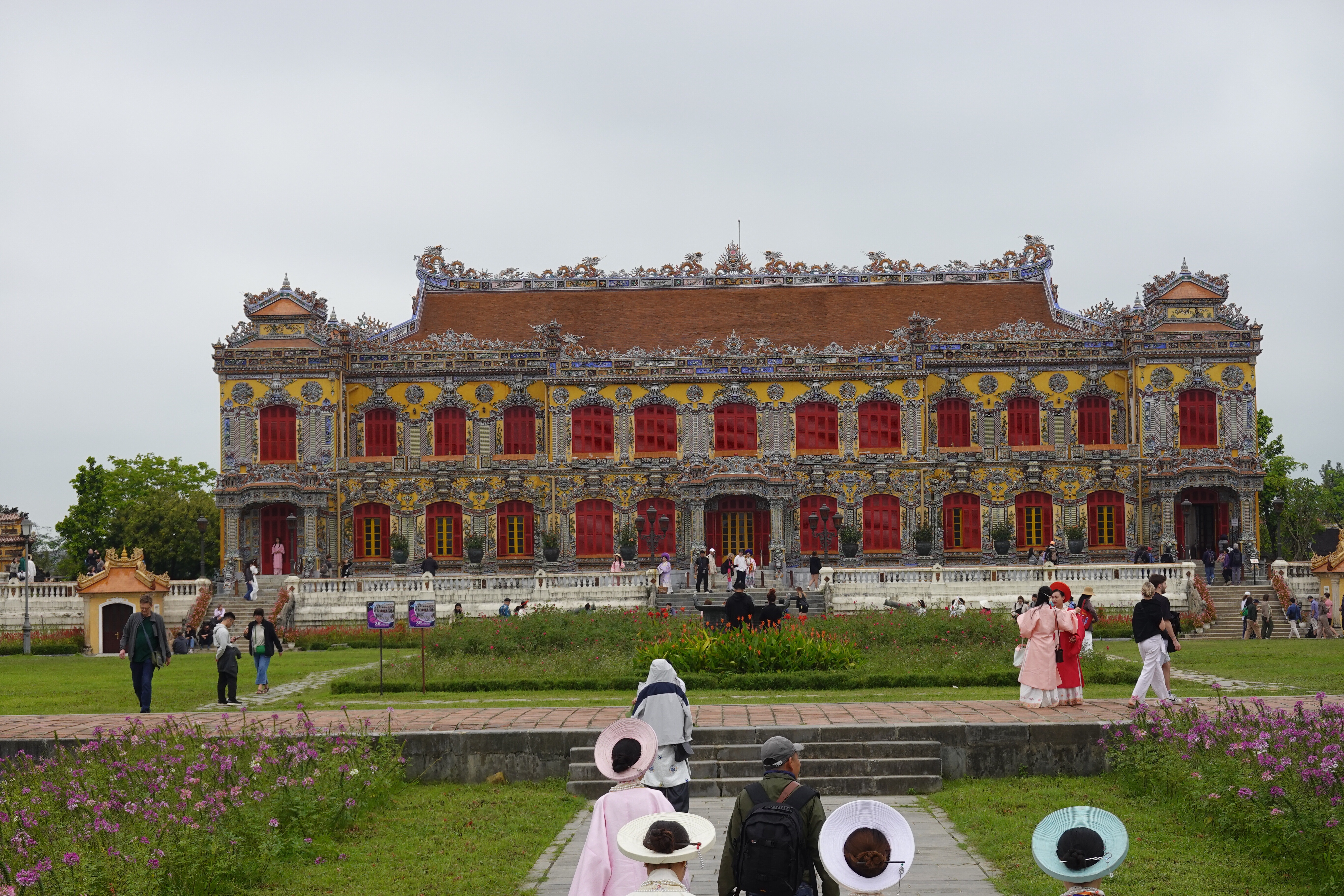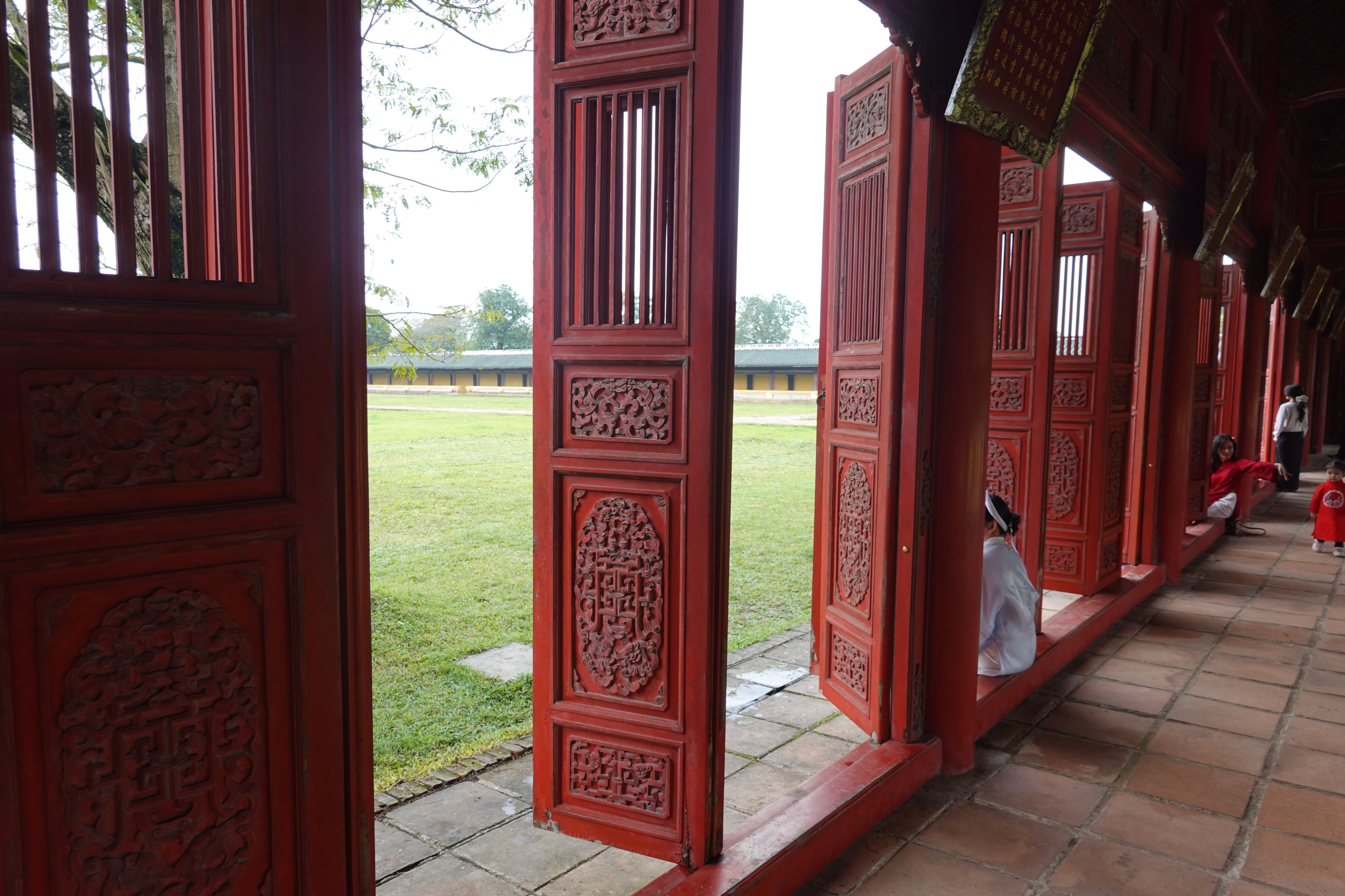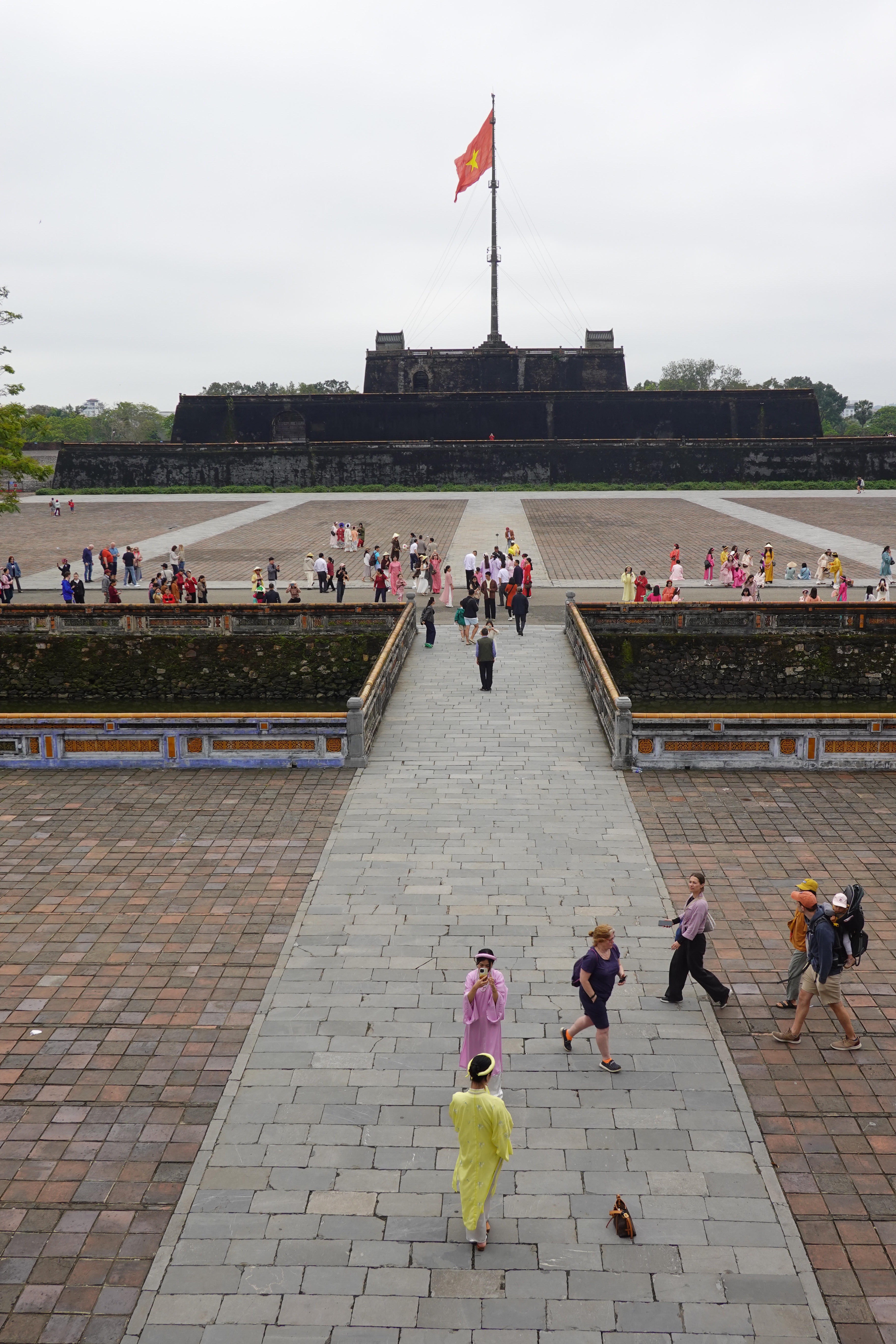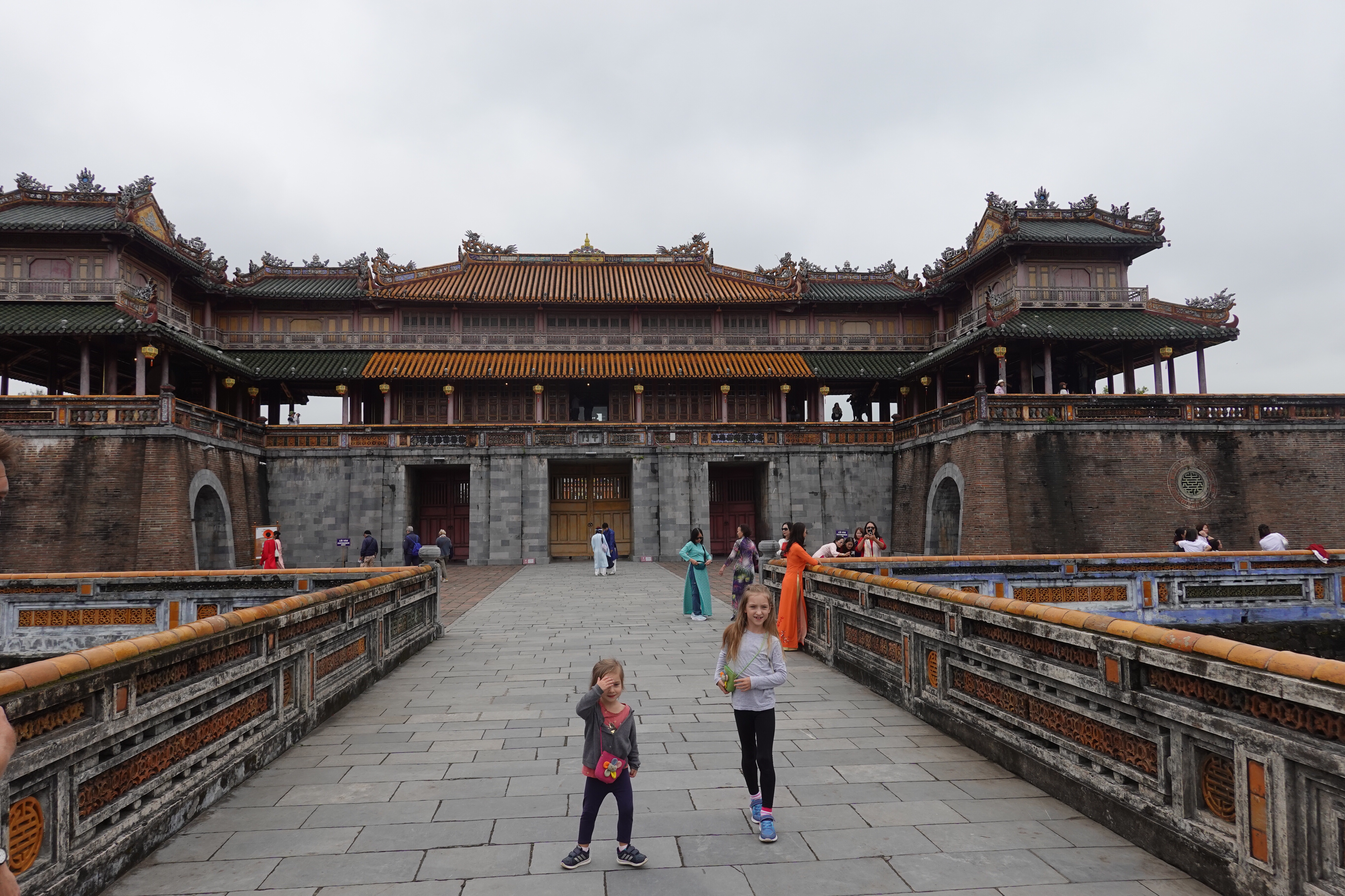 Fun fact: at certain famous monuments or locations, especially those popular with Asian tourists, you can rent ethnic or royal clothes so as to indulge more deeply in the very popular pastime of taking selfies or posing in a large number of practised and polished poses for your friends. We saw individuals, small groups, and large groups doing this wherever we went in Hué. And not always in historical costume. We dropped in to what turned out to be a fancy cafe/bar attached to a six star hotel that was full of 20 year old girls taking turns taking each others’ pictures pretending not to pose. Yikes.