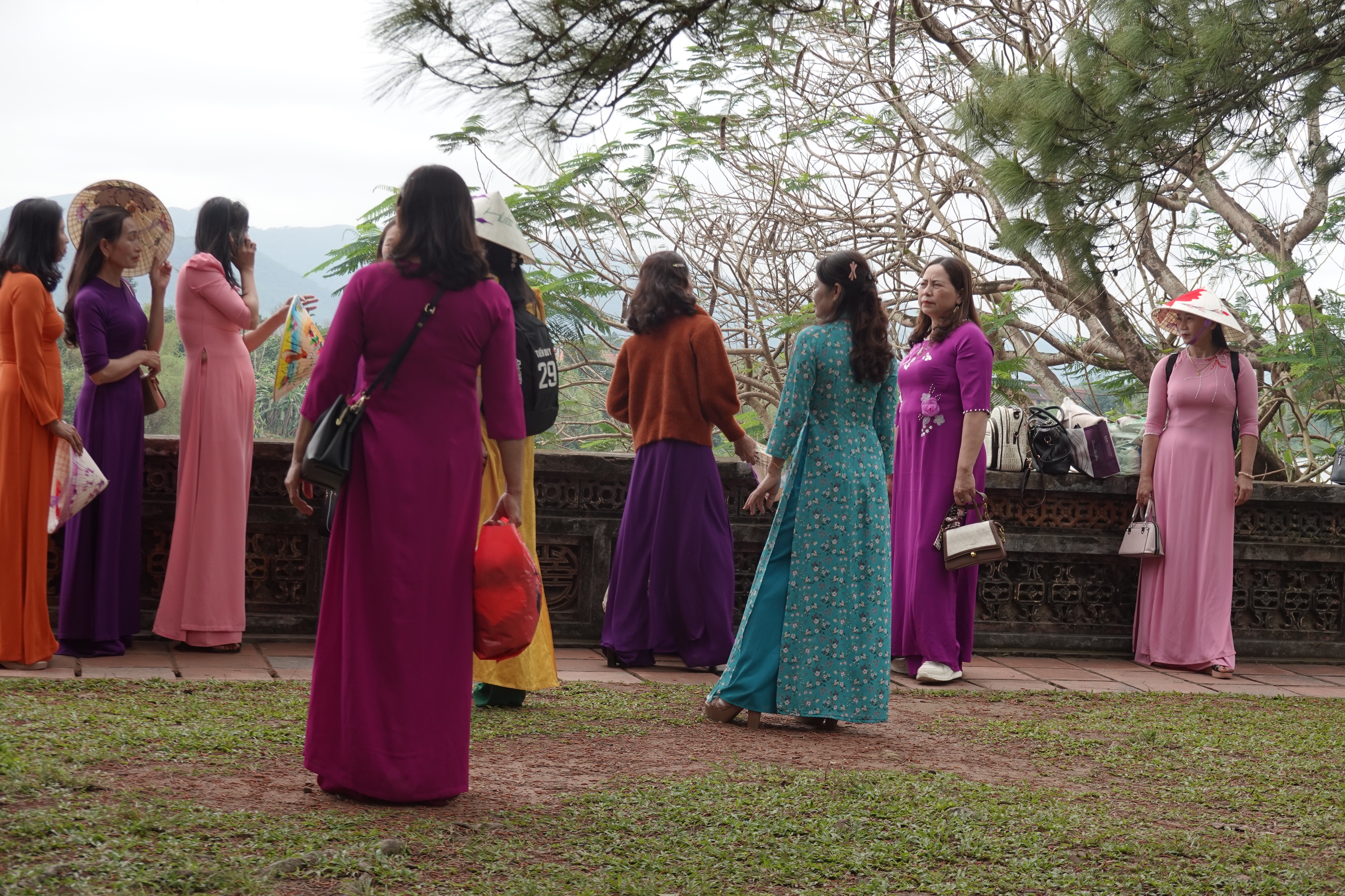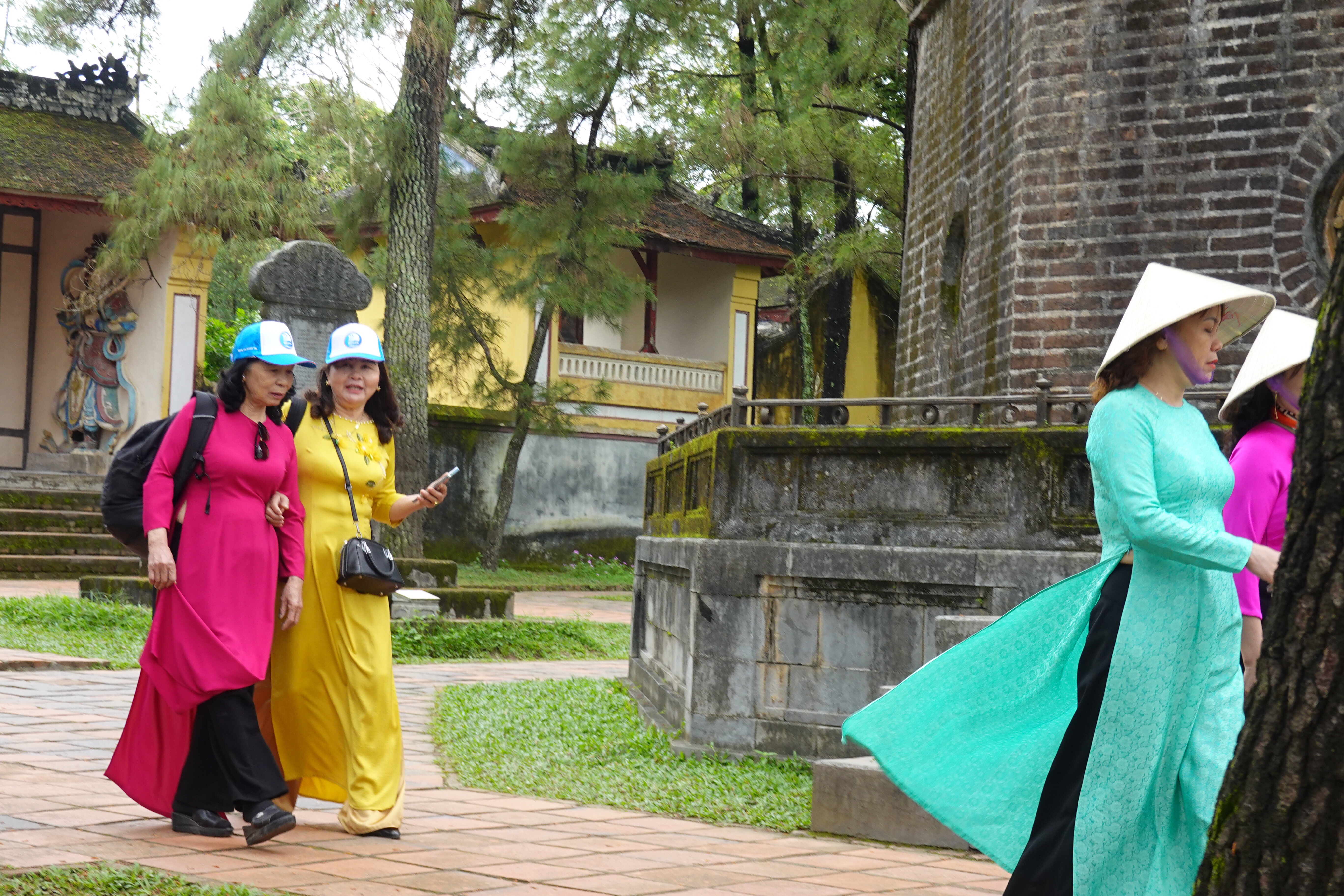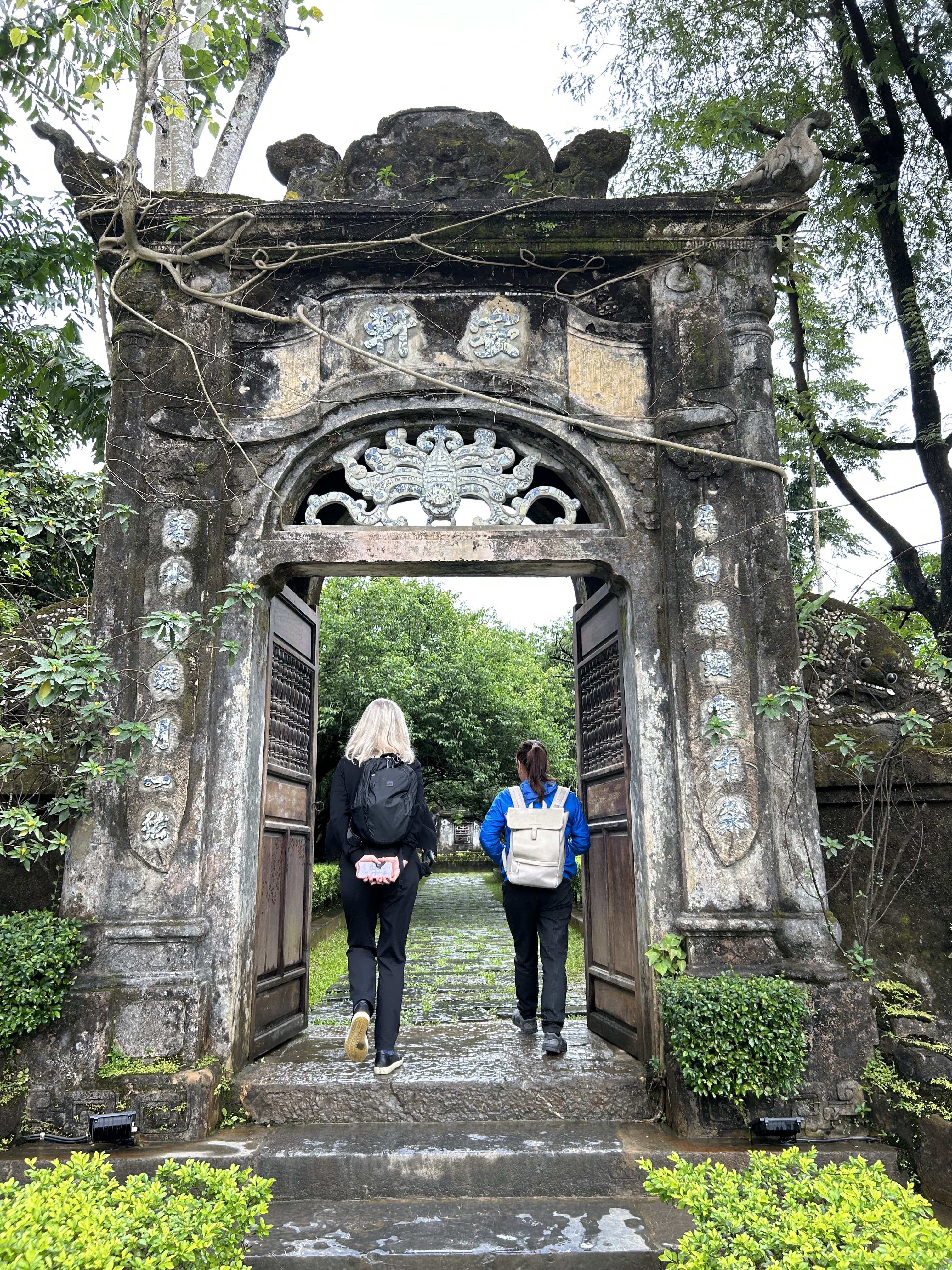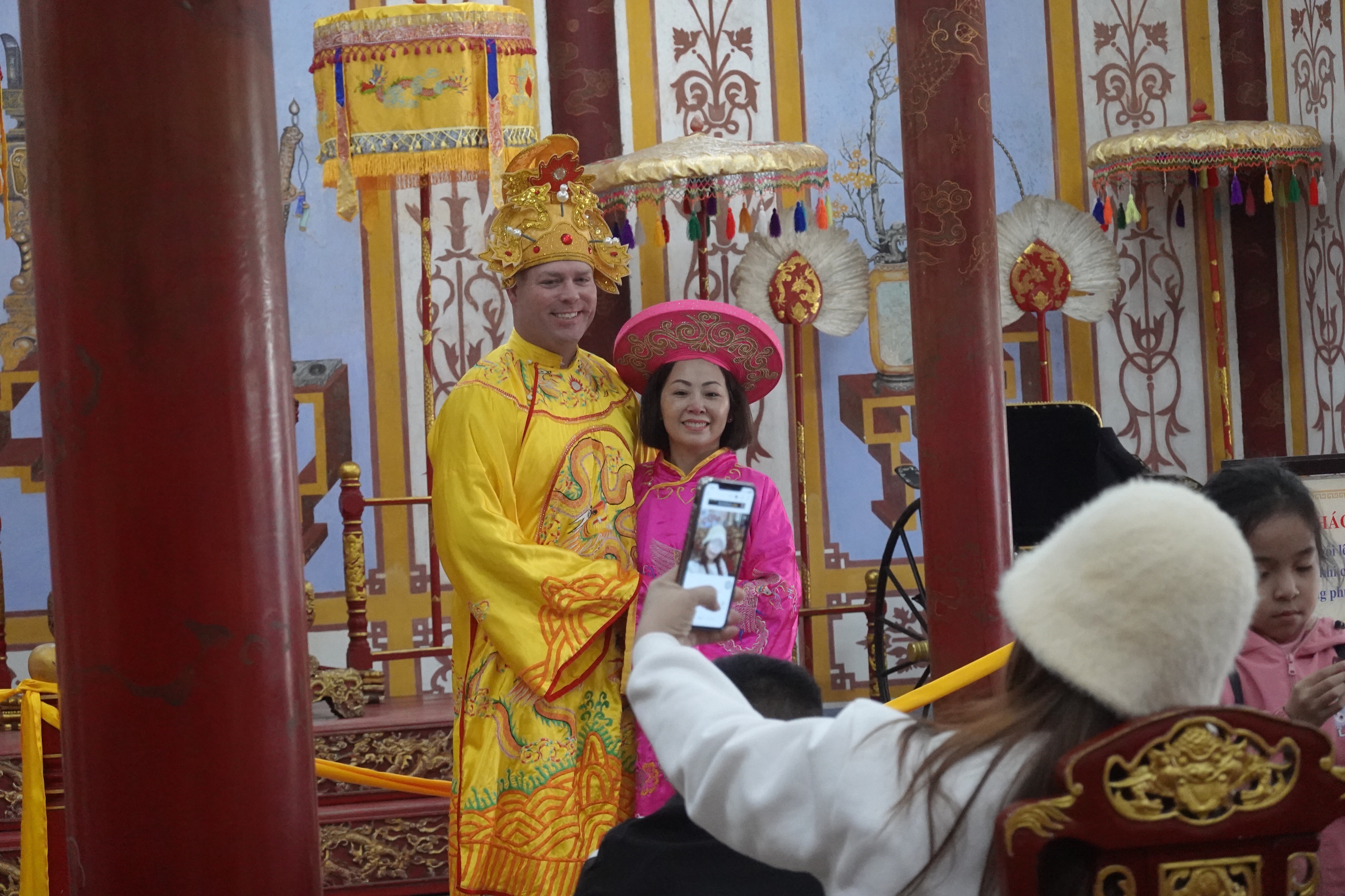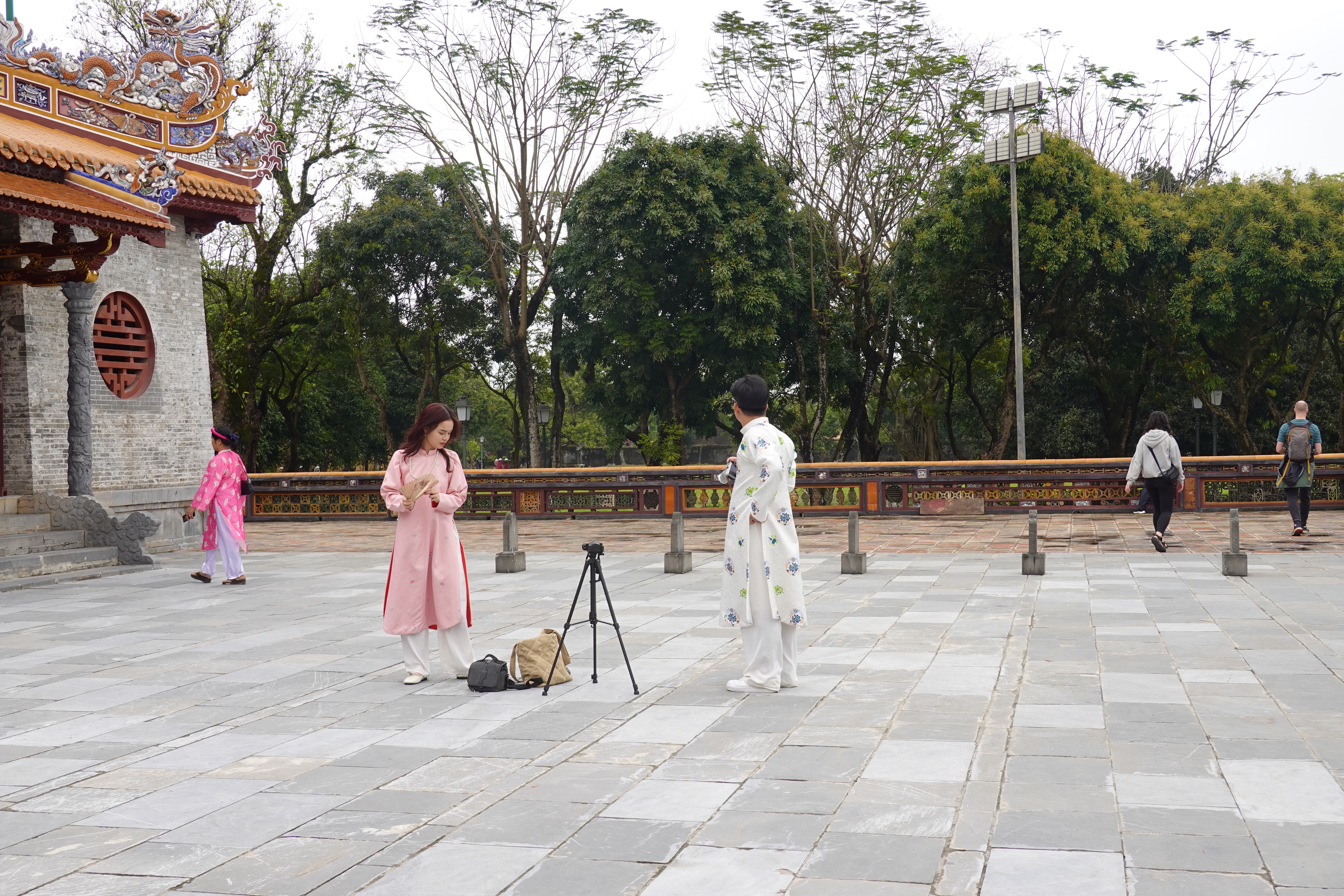 Fun fact: at certain famous monuments or locations, especially those popular with Asian tourists, you can rent ethnic or royal clothes so as to indulge more deeply in the very popular pastime of taking selfies or posing in a large number of practised and polished poses for your friends. We saw individuals, small groups, and large groups doing this wherever we went in Hué. And not always in historical costume. We dropped in to what turned out to be a fancy cafe/bar attached to a six star hotel that was full of 20 year old girls taking turns taking each others’ pictures pretending not to pose. Yikes.